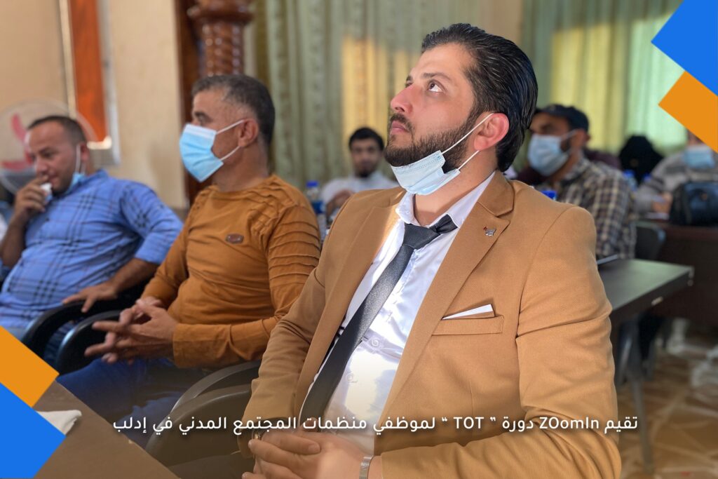 #ZOomIn organization is holding a TOT training course for civil society organizations employees in northern Syria in the Binnish area, after which the participants are given a certificate of attendance for the course.