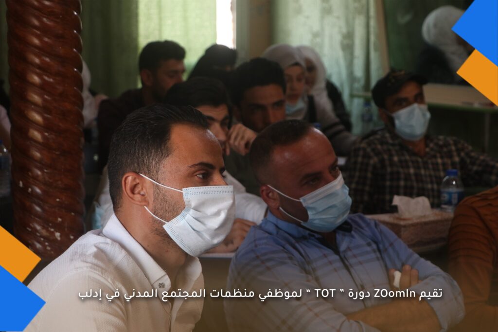 #ZOomIn organization is holding a TOT training course for civil society organizations employees in northern Syria in the Binnish area, after which the participants are given a certificate of attendance for the course.